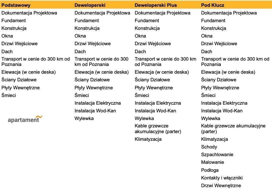 Domy budowane są i wykańczane wg jednego z trzech wybranych pakietów: