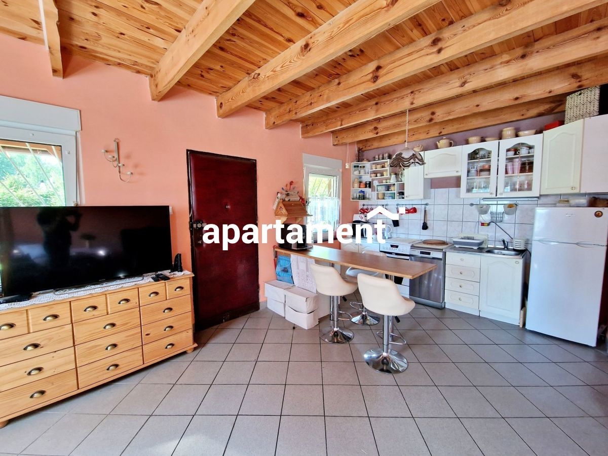 Na powierzchni 36 m² na parterze znajduje się przestronny salon z kominkiem, aneksem kuchennym oraz łazienka z prysznicem i toaletą. Kuchnia jest w pełni wyposażona w lodówkę, zmywarkę, kuchenkę, piekarnik oraz zestaw mebli. W salonie czekają na Państwa sofa, fotel oraz stół - idealne miejsce na relaks i spotkania z rodziną.