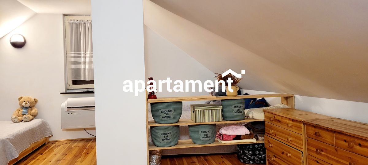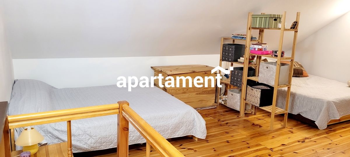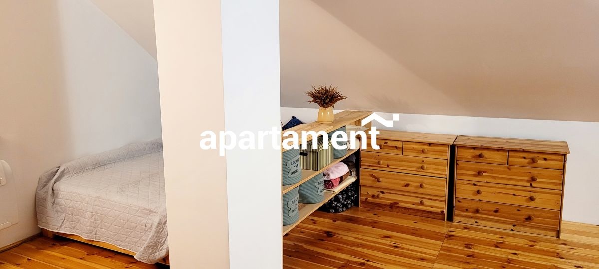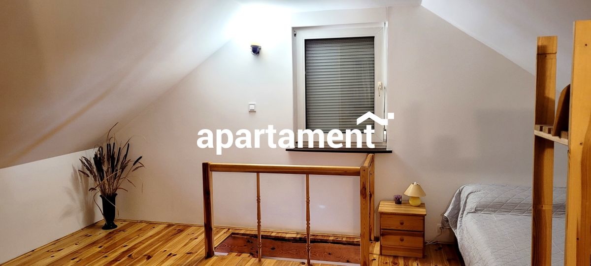 Górne piętro to użytkowe poddasze o powierzchni 36 m² (po podłodze), zaaranżowane jako open space. Znajdują się tu trzy podwójne łóżka szerokości 160 cm, z szafeczkami nocnymi i komodami. Istnieje możliwość przearanżowania tego miejsca na dwa odrębne pokoje, dostosowując je do własnych potrzeb.