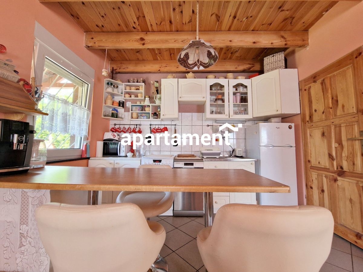 Ogrzewanie zapewnia kominek z rozprowadzeniem ciepła na piętro, co dodatkowo zwiększa komfort użytkowania.