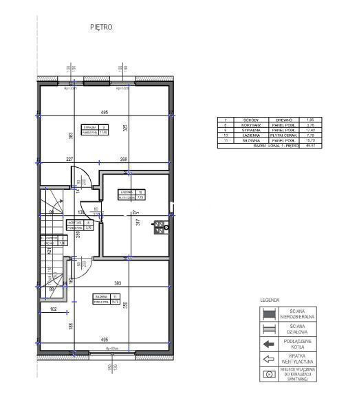 - Ściany działowe z paneli Ytong o grubości 10 cm, zbrojone
