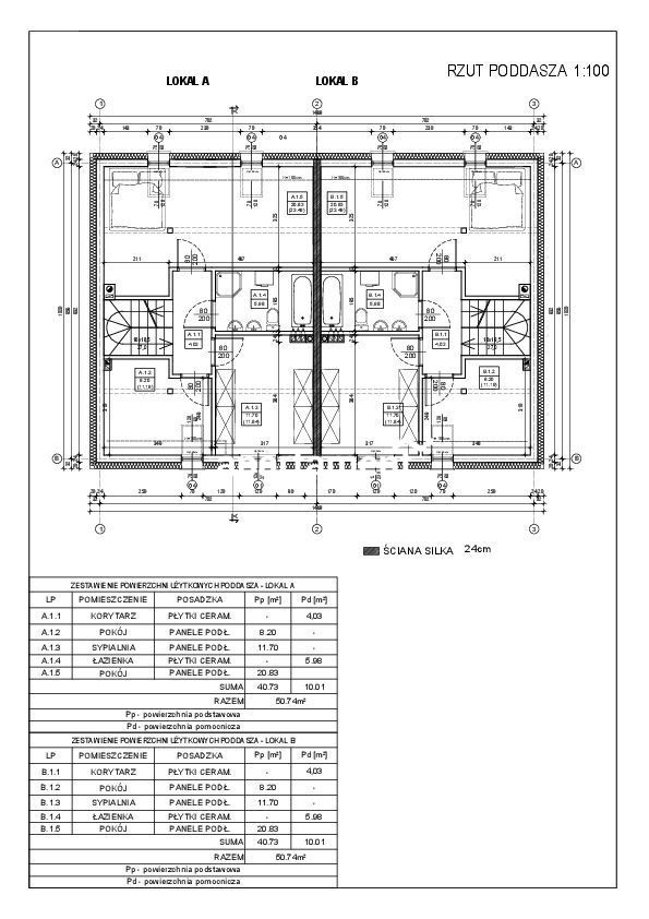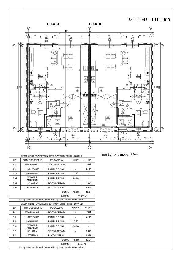 - dwóch bliźniaków o powierzchni 108,51m2 (parter z poddaszem użytkowym w tym salon z kuchnią i 4 sypialnie) każdy z własnym ogrodem i miejscem postojowym