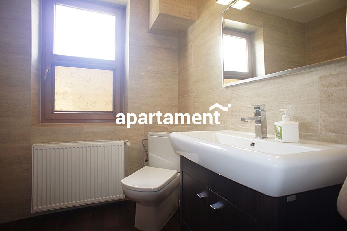 Dom wybudowany bardzo solidnie z cegły, dach pokryty papą. Na podłogach w pokojach i przedpokoju znajduje się parkiet, w kuchni i łazienkach terakota. Ściany są malowane, częściowo tapetowane lub ozdobione boazerią. Dodatkowym atutem są klimatyzacje w salonie na dole oraz w pokoju na piętrze, zapewniające komfort niezależnie od pory roku. Pokoje na dole i na piętrze mają balkony z pięknym widokiem na pobliski park z akwenem wodnym oraz na duży, zielony ogród z drzewami owocowymi.