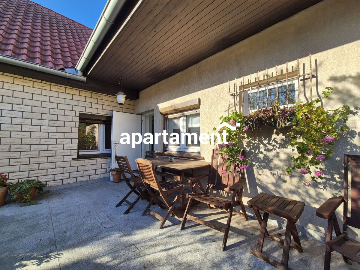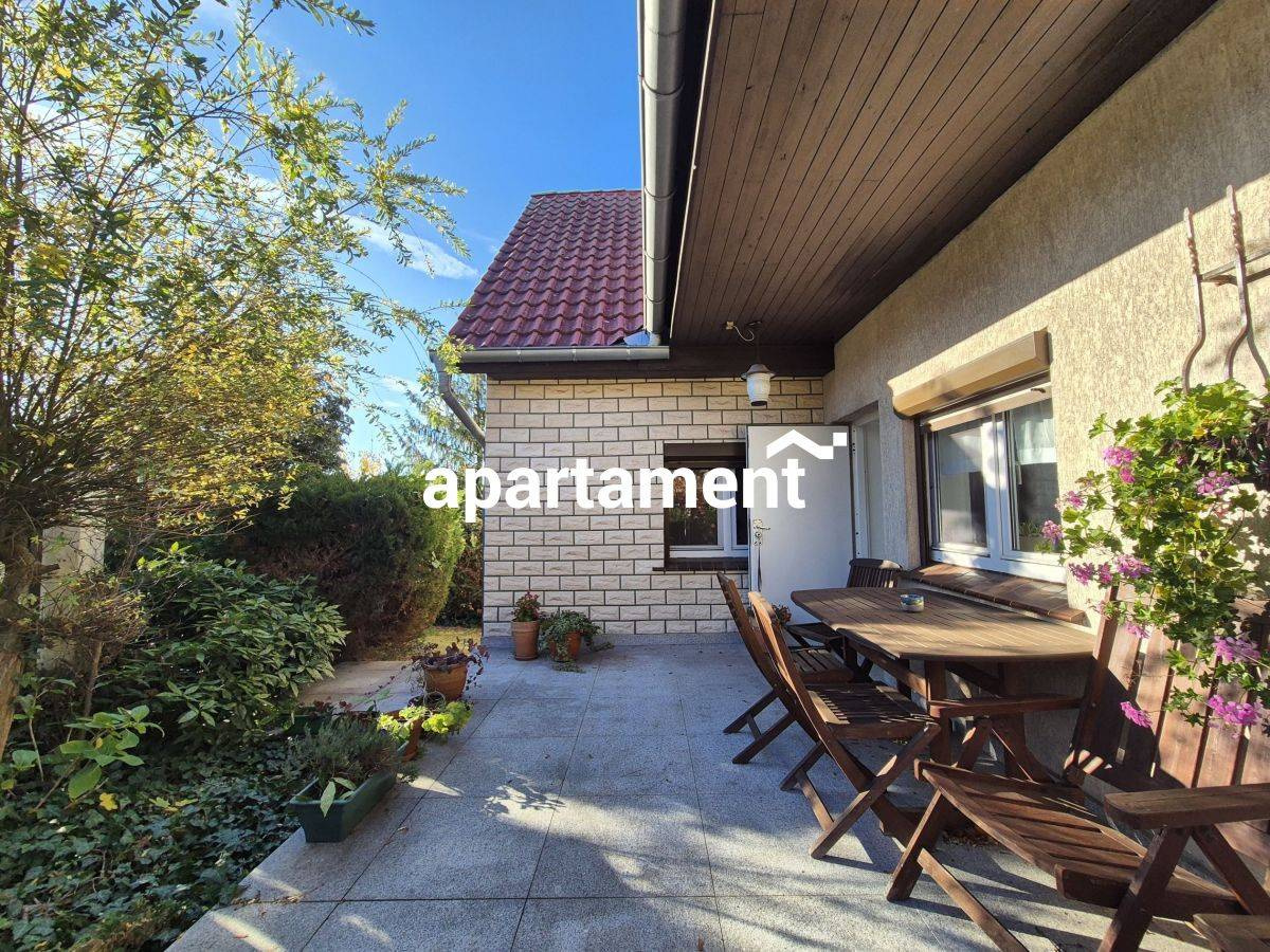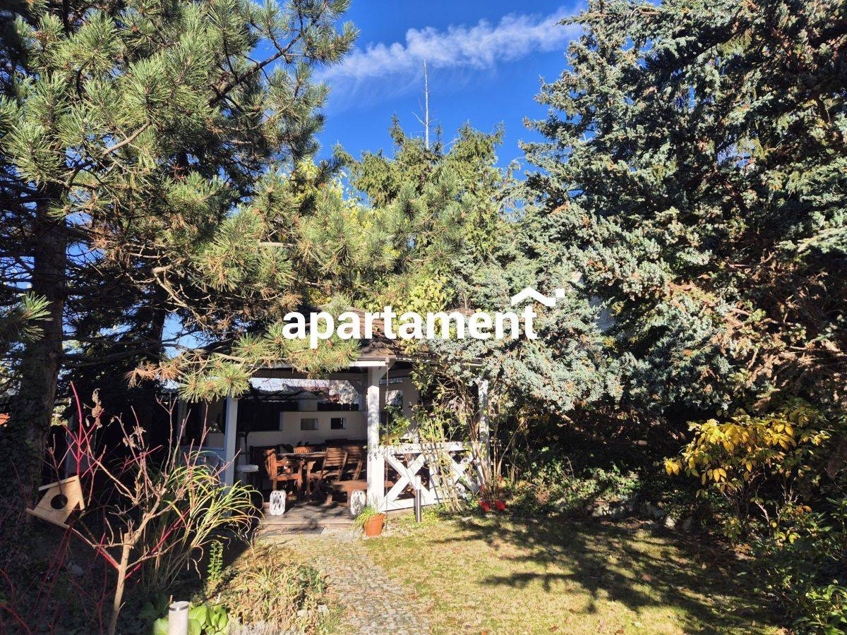 Pięknie zagospodarowany ogród z licznymi drzewami to idealne miejsce do relaksu i odpoczynku po pracy. W ogrodzie znajduje się wiata z grillem, rozprowadzone oświetlenie i woda, co czyni przestrzeń jeszcze bardziej funkcjonalną i przyjemną.
