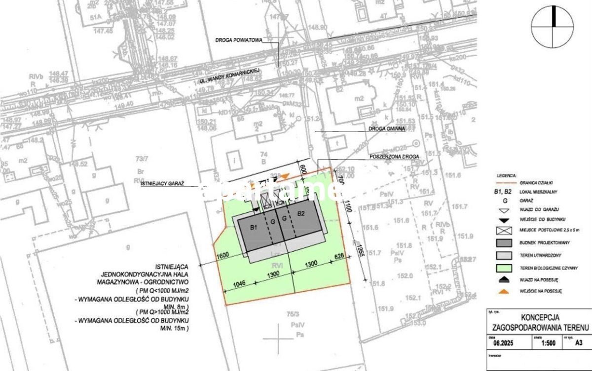 Został złożony wniosek o wydanie warunków zabudowy na budynek jednorodzinny w zabudowie bliźniaczej.