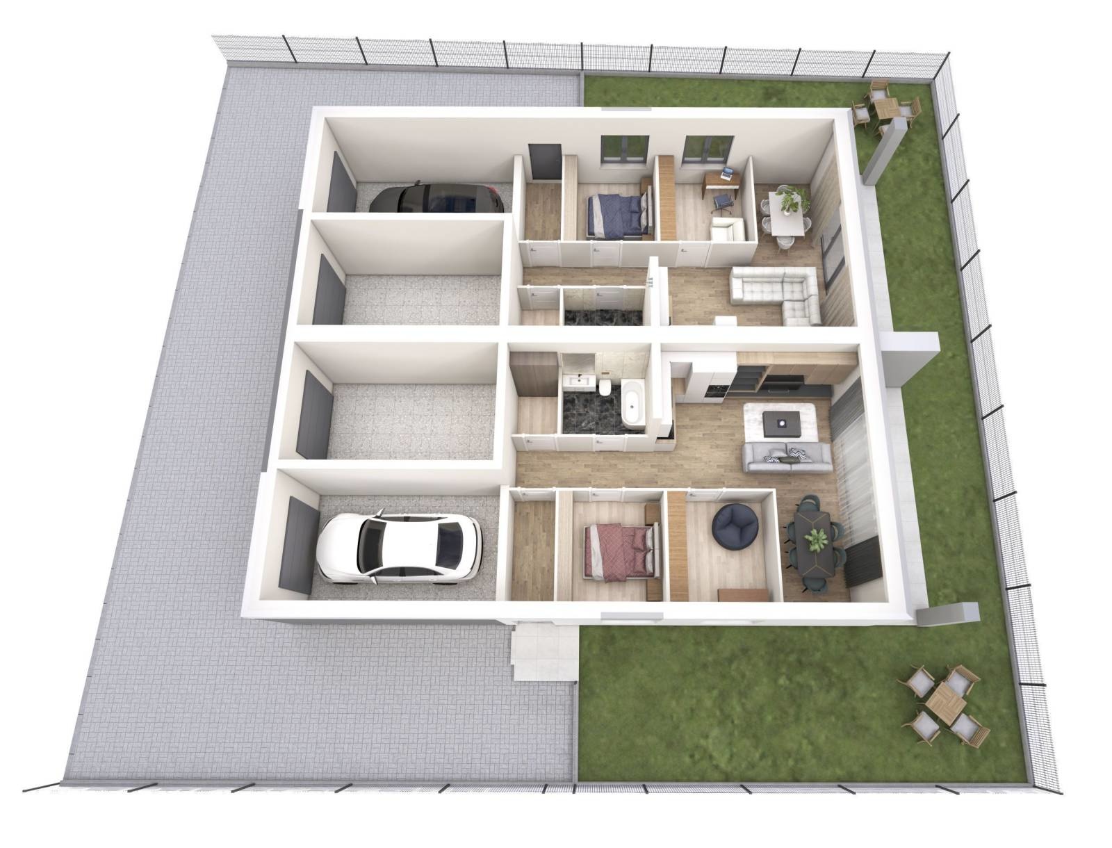Inwestycja składa się z jednego budynku z czterema samodzielnymi lokalami mieszkalnymi, z własnym garażem w bryle budynku, oraz dużych ogródków dla apartamentów na parterze.