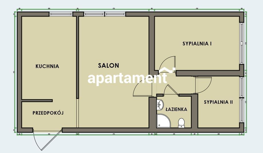 Nieruchomość składa się z widnej kuchni, salonu połączonego z jednym pokojem (istnieje możliwość przywrócenia układu 3 pokojowego), sypialni, łazienki i przedpokoju.
