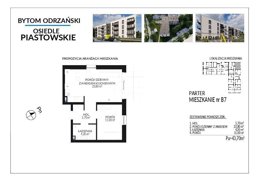 - Powierzchnia: 43,70 m2
