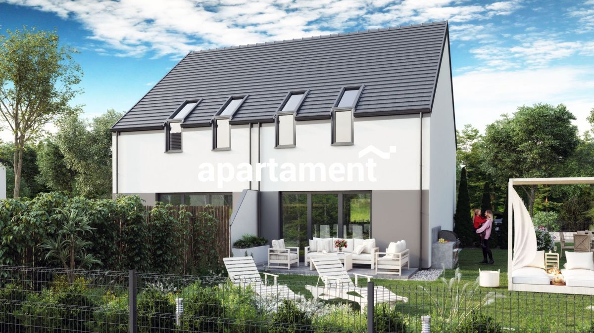 - dwóch bliźniaków o powierzchni 108,51m2 (parter z poddaszem użytkowym w tym salon z kuchnią i 4 sypialnie) każdy z własnym ogrodem i miejscem postojowym