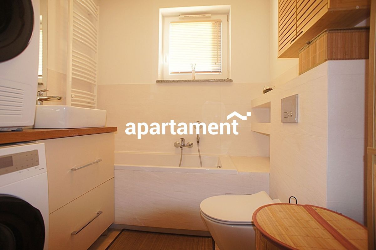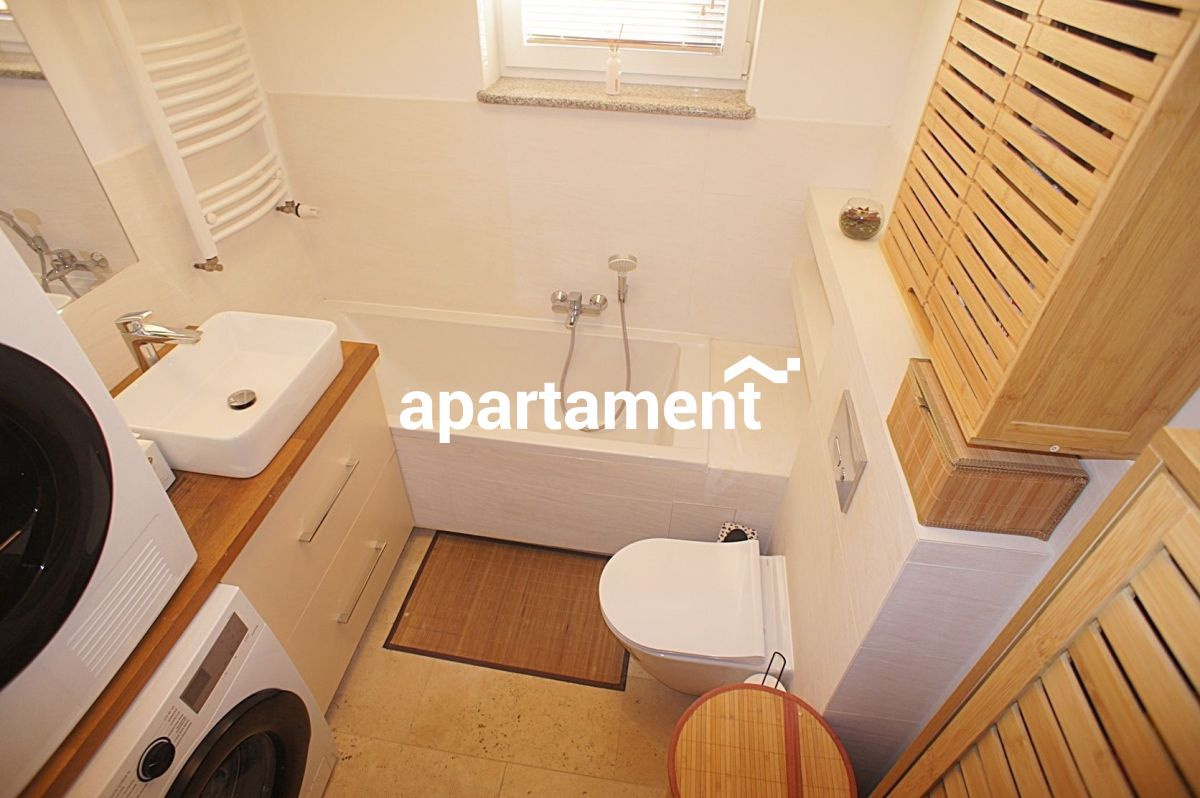STANDARD WYKOŃCZENIA : Ściany gładzone i malowane, na podłogach podłoga dębowa bardzo dobrej jakości, (naturalne, olejowane drewno) , w łazience położono naturalny kamień - trawertyn. W aneksie kuchennym meble pod zabudowę wraz ze sprzętem: lodówka z zamrażalnikiem w zabudowie, zmywarka, płyta ceramiczna, piekarnik oraz pochłaniacz. Blaty w kuchni dębowe. Na oknach drewniane rolety bambusowe. Drzwi wewnętrzne drewniane, sosnowe. W pokoju dziennym nowoczesny grzejnik panelowy. Parapety kamienne. W cenie mieszkania zostają dwie szafy pod zabudowę: w przedpokoju oraz w sypialni. Pozostałe meble widoczne na zdjęciach mogą pozostać w mieszkaniu, po indywidualnych ustaleniach z obecnym właścicielem.