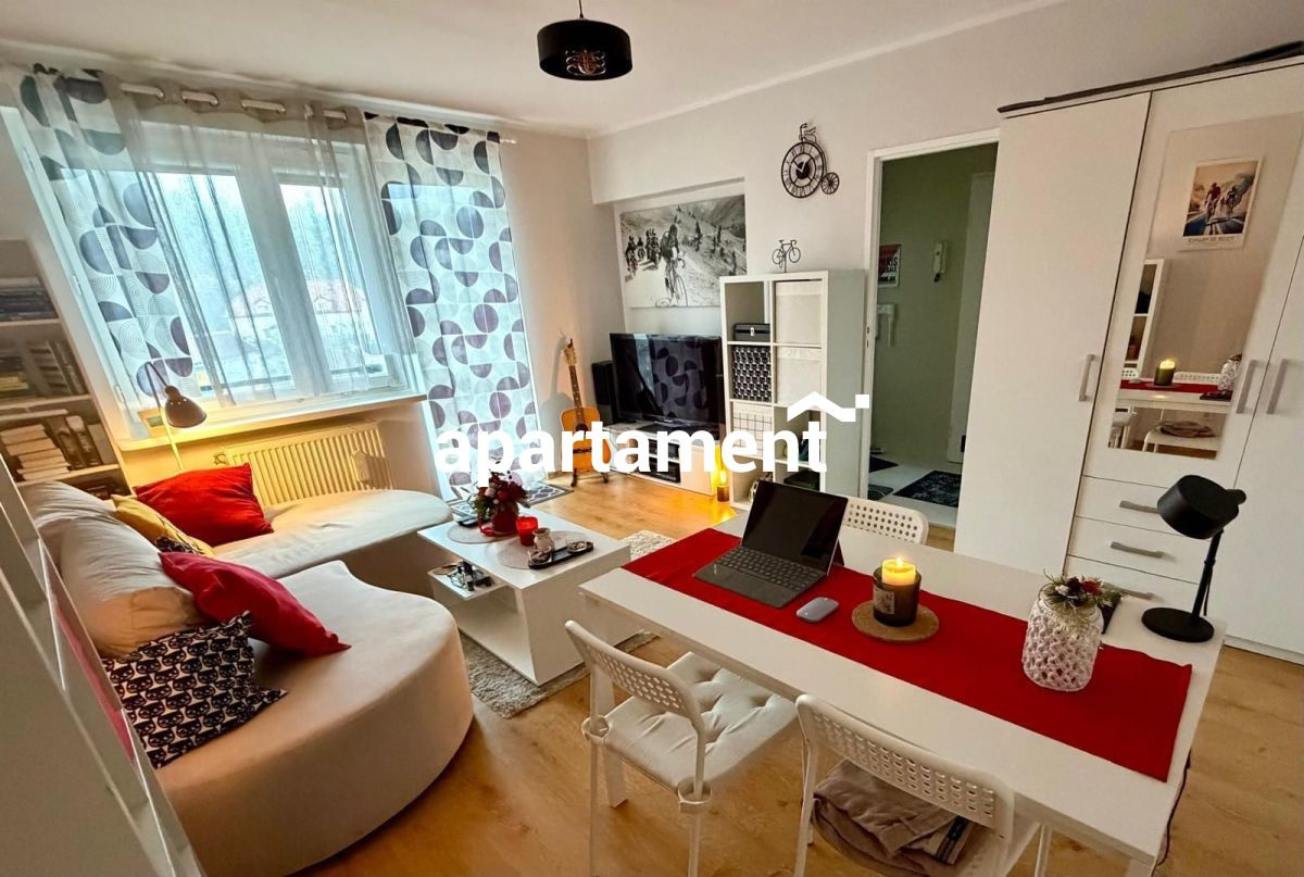 Mieszkanie o powierzchni 35,4 m² z balkonem i piwnicą, znajduje się na II piętrze niskiego bloku w nowszej części osiedla. Jest w pełni umeblowane i wyposażone, gotowe do zamieszkania od zaraz!